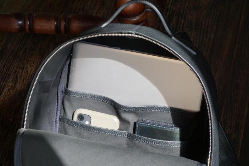 カジュアル、フォーマル共に合わせられるようシンプルな作りに拘ったリュックサック。