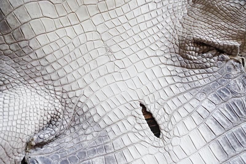 ヒマラヤクロコダイルの特徴的なホワイトからグレーへの繊細なグラデーションは、世界で最も美しいエキゾチックレザーと称され、極めて限られた数しか存在せず、一つとして同じ模様はありません。