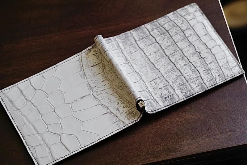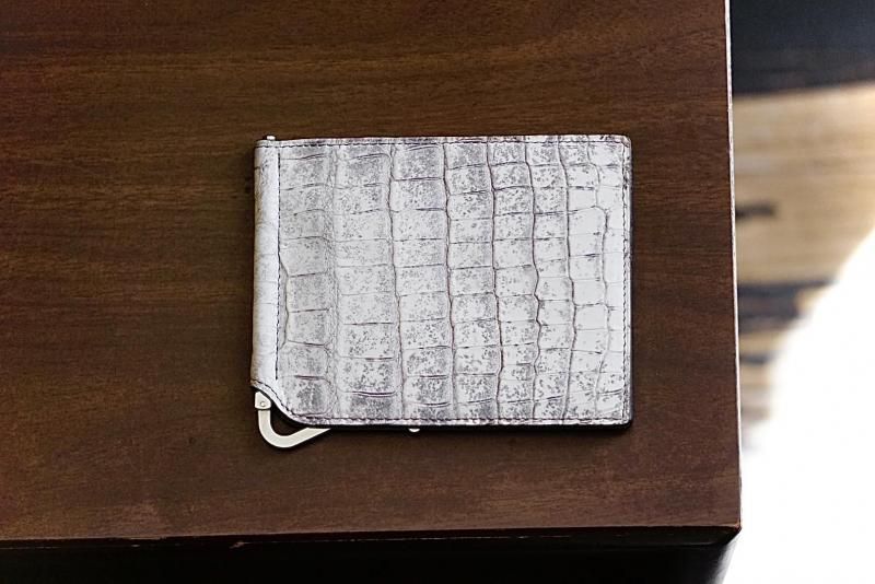 希少で高級感溢れるヒマラヤクロコダイルを使用したマネークリップ。